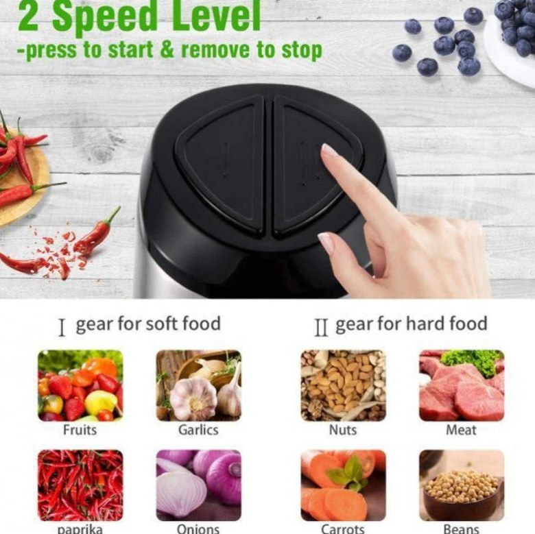 Pregătește rapid și fără efort piureuri, salate, sosuri, milkshake-uri sau condimente măcinate cu ajutorul acestui tocător electric multifuncțional. Echipat cu un motor puternic din cupru, un bol din inox durabil și 4 lame S solide, aparatul este perfect pentru uz zilnic în orice bucătărie.