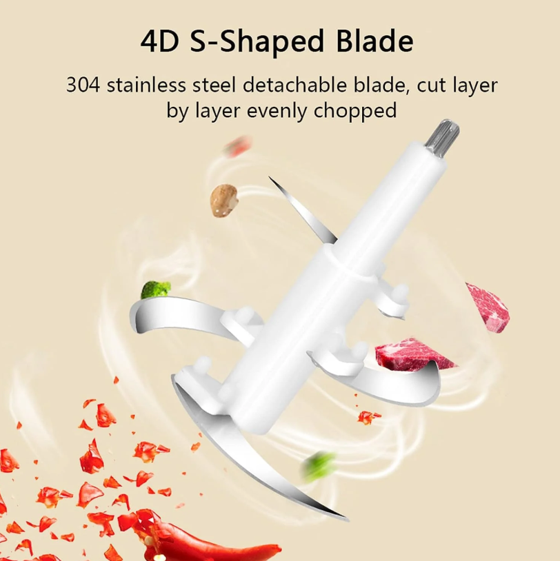Tocător Electric Multifuncțional din Inox – Motor Puternic, 4 Lame, Capacitate Mare, 2 Viteze, pentru Piureuri, Legume, Fructe, Carne, Condimente